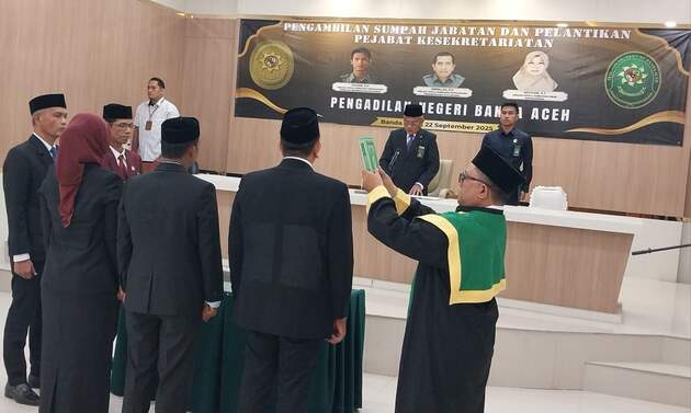 TAJDID.ID~Banda Aceh || Ketua Pengadilan Negeri Banda Aceh, Dr Teuku Syarafi, SH, MH, Senin 22 September 2025 melantik 3 (tiga) orang Pejabat Kesekretariatan Pengadilan Negeri Banda Aceh di Aula PN Bna, Selasa 23/9/2025)