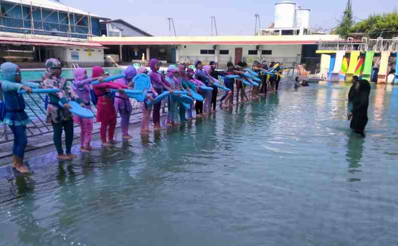 “Pemanasan bertujuan untuk menghindari cedera otot dan mempersiapkan tubuh anak didik agar lebih siap mengikuti kegiatan renang. Selain itu, pemanasan juga membantu meningkatkan fokus dan koordinasi gerak,” bebernya, sambil tersenyum.