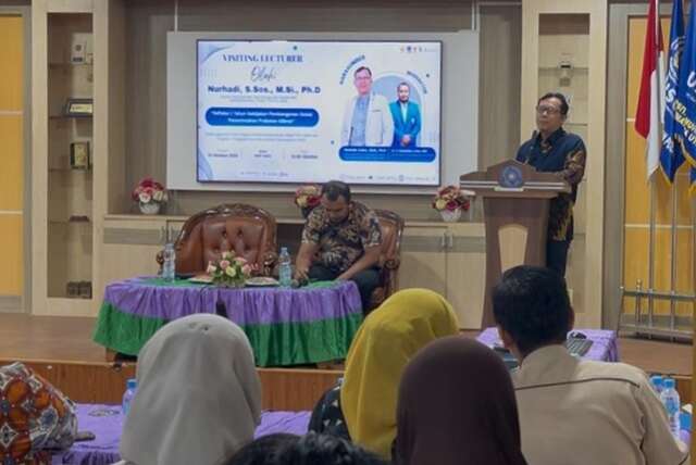 TAJDID.ID~Medan || Program Studi Kesejahteraan Sosial Fakultas Ilmu Sosial dan Ilmu Politik (Prodi Kessos FISIP) dan Progam S2 Magister Ilmu Komunikasi Pascasarjana (MIKOM Pasca) Universitas Muhammadiyah Sumatera Utara (UMSU) menggelar kegiatan “Refleksi 1 Tahun Kebijakan Pembangunan Sosial Pemerintahan Prabowo–Gibran”. Acara yang berlangsung di Aula FISIP UMSU, Kamis (23/10) dikemas dalam acara Visiting Lecturer dengan menghadirkan pembicara Nurhadi K. Sutrisno, S.Sos., M.Si., Ph.D, Dosen Departemen Pembangunan Sosial dan Kesejahteraan (PSDK) FISIPOL Universitas Gadjah Mada (UGM) Yogyakarta dengan Moderator Dr. H. Mujahiddin, S.Sos., MSP, Dosen Prodi Kessos FISIP UMSU.