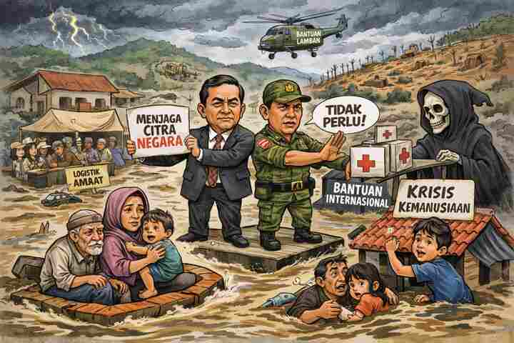 Farid juga menyoroti keputusan pemerintah yang menolak tawaran bantuan internasional. Menurutnya, alasan kedaulatan dan kemampuan nasional tidak relevan ketika kapasitas penanganan di lapangan terbukti tidak memadai.