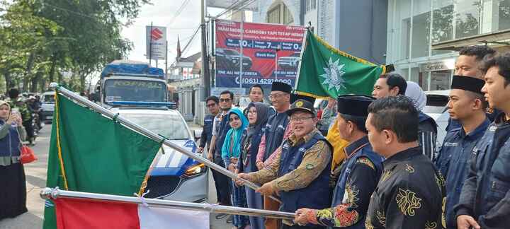 Penyerahan bantuan 30 ton beras dan pemberangkatan bantuan tujuh truk logistik untuk Tapsel, Tapteng dan Sibolga berlangsung, Senin (22/12) pagi di Gedung Dakwah Muhammadiyah Jl SM Raja 136 Medan.