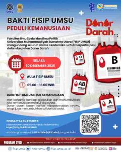 Kegiatan donor darah tersebut berlangsung sejak pukul 09.00 hingga 13.00 WIB dan diikuti oleh dosen, tenaga kependidikan, serta mahasiswa FISIP UMSU. Aksi kemanusiaan ini menjadi bagian dari komitmen FISIP UMSU dalam menumbuhkan kepedulian sosial sekaligus mendukung ketersediaan stok darah di Kota Medan.