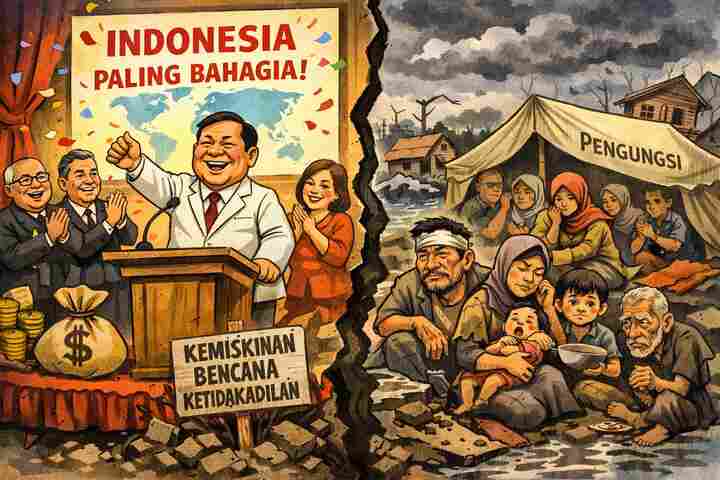Survei kebahagiaan sejatinya mengukur persepsi, bukan realitas struktural. Ia tidak sepenuhnya menangkap penderitaan kolektif, ketimpangan sosial, dan luka ekologis yang dialami sebagian rakyat. Karena itu, ketika angka-angka tersebut diangkat sebagai narasi kebangsaan tanpa menyebut konteks duka yang sedang berlangsung, tercipta jarak batin antara negara dan warganya.