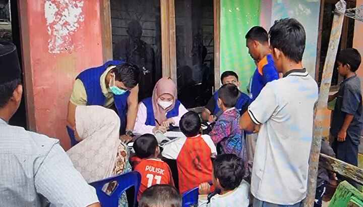 Tim kesehatan yang terdiri dari dokter bidan perawat dan apoteker ini mendirikan Puskesmas Mini di Desa Serule dan melayani pasien secara mobilling ke rumah pasien di Desa Atu Payung dan Jamur Konyel yang jauhnya mencapai 5 Km dari Serule dengan kondisi jalan berlumpur. (SHd)