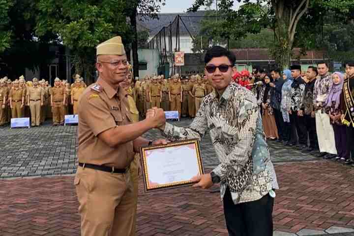 TAJDID.ID~Garut || Dwi Azhar Ramdhani menerima Penghargaan Pemuda Berprestasi 2025 dari Pemerintah Kabupaten Garut yang diserahkan oleh Sekretaris Daerah Garut pada apel Senin pagi, 19 Januari 2026, di Lapangan Setda Garut.