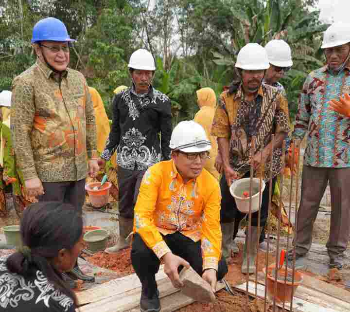TAJDID.ID~OKU || Pimpinan Cabang Muhammadiyah (PCM) Peninjauan melaksanakan peletakan batu pertama pembangunan TK ABA Darussalam dan SMP Muhammadiyah Penilikan di Desa Penilikan, Kabupaten Ogan Komering Ulu (OKU), Sumatera Selatan, Sabtu (25/1).