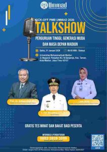 TAJDID.ID~Madiun || Universitas Muhammadiyah Madiun (UMMAD) akan menggelar acara Kick-off PMB UMMAD 2026 dengan talkshow bertajuk “Perguruan Tinggi, Generasi Muda, dan Masa Depan Madiun” pada Sabtu, 31 Januari 2026. Acara ini menjadi pembuka rangkaian penerimaan mahasiswa baru (PMB) tahun ajaran 2026/2027 dan diharapkan menjadi momentum penting bagi calon mahasiswa serta masyarakat di wilayah Madiun dan sekitarnya.Talkshow tersebut akan berlangsung mulai pukul 09.00 WIB hingga selesai di Kampus Universitas Muhammadiyah Madiun, Jl. Mayjend. Panjaitan No. 18, Banjarejo, Kec. Taman, Kota Madiun, Jawa Timur 63137.