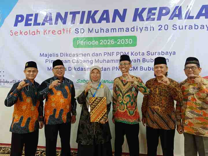 TAJDID.ID~Surabaya || Pimpinan Daerah Muhammadiyah (PDM) Kota Surabaya resmi melantik Sutiyah, S.Pd sebagai Kepala Sekolah Kreatif SD Muhammadiyah 20 Surabaya untuk masa jabatan 2026–2030, Sabtu (31/1/2026). Pelantikan ini menjadi momentum penguatan kualitas pendidikan, akhlak, dan tata kelola sekolah Muhammadiyah di Kota Surabaya.