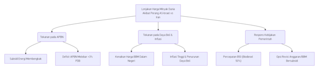 Untuk memahami implikasi bagi Indonesia, berikut adalah visualisasi dampak utama dari lonjakan harga minyak ini: